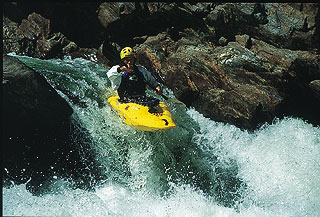 Playboat; WW 1°, 2° e 3° grado. Rivoluzionario kayak da rodeo a fondo piatto, impressionante velocità nell’esecuzione di figure piatte sull’onda e verticali nel buco. Innovativo sedile anatomico.(cm 234 x 62,5; kg 16; volume 175 lt.)VOODOO II (volume 185 lt.) |