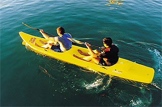 | Sit-on-top (1-2-3 posti). Stabile e facile da usare. Ideale per famiglie, spiagge e noleggiatori. Fornito di serie con tappo di svuotamento, passacorda per fissaggio sedile, 2 comodi vani porta oggetti, 2 maniglie rinforzate per il trasporto e ampi gavoni anteriore e posteriore. |